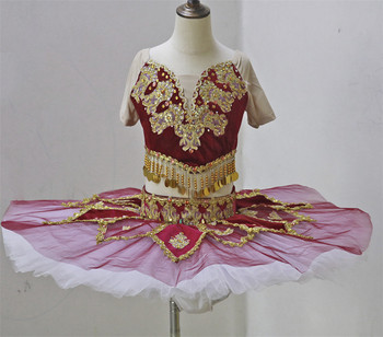 새로운 핑크 자카드 패브릭 바디 9 레이어 STIFF TULLE 골드 응용 전문 발레 투투 스커트. 새로운 -- 25